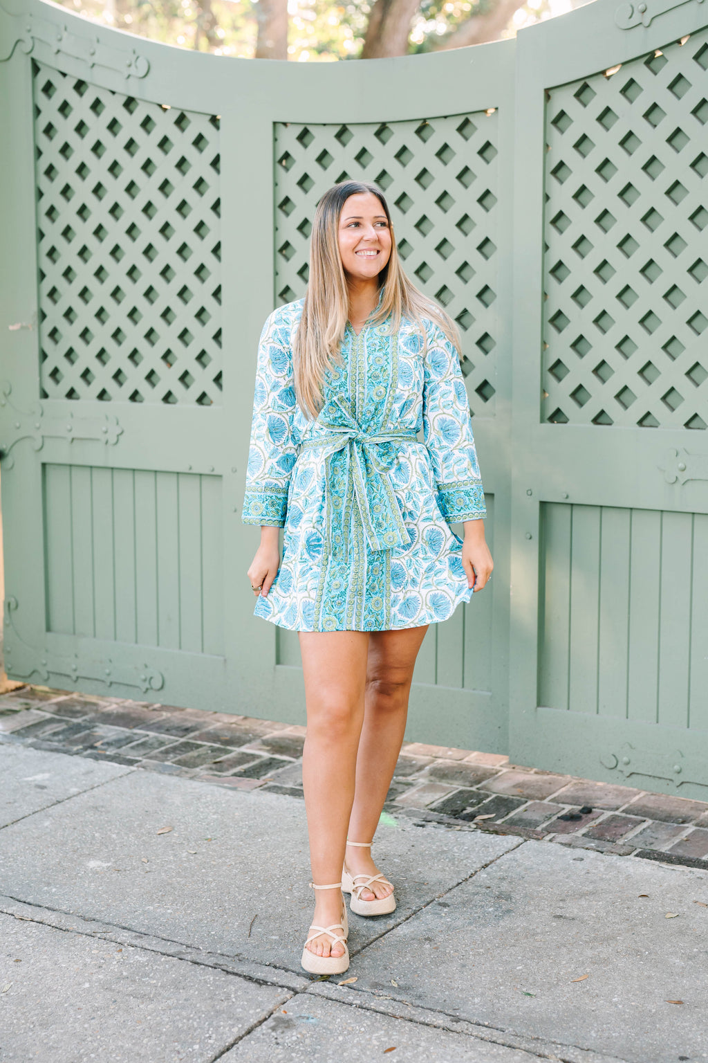 Introducing the French Quarters, a sophisticated blend of complimenting prints. With a self-tie belt to accentuate your figure, long bell sleeves for added elegance, and a ruffled collar for a touch of flair, this piece is a must-have.