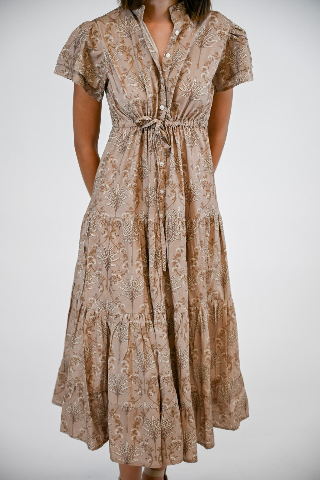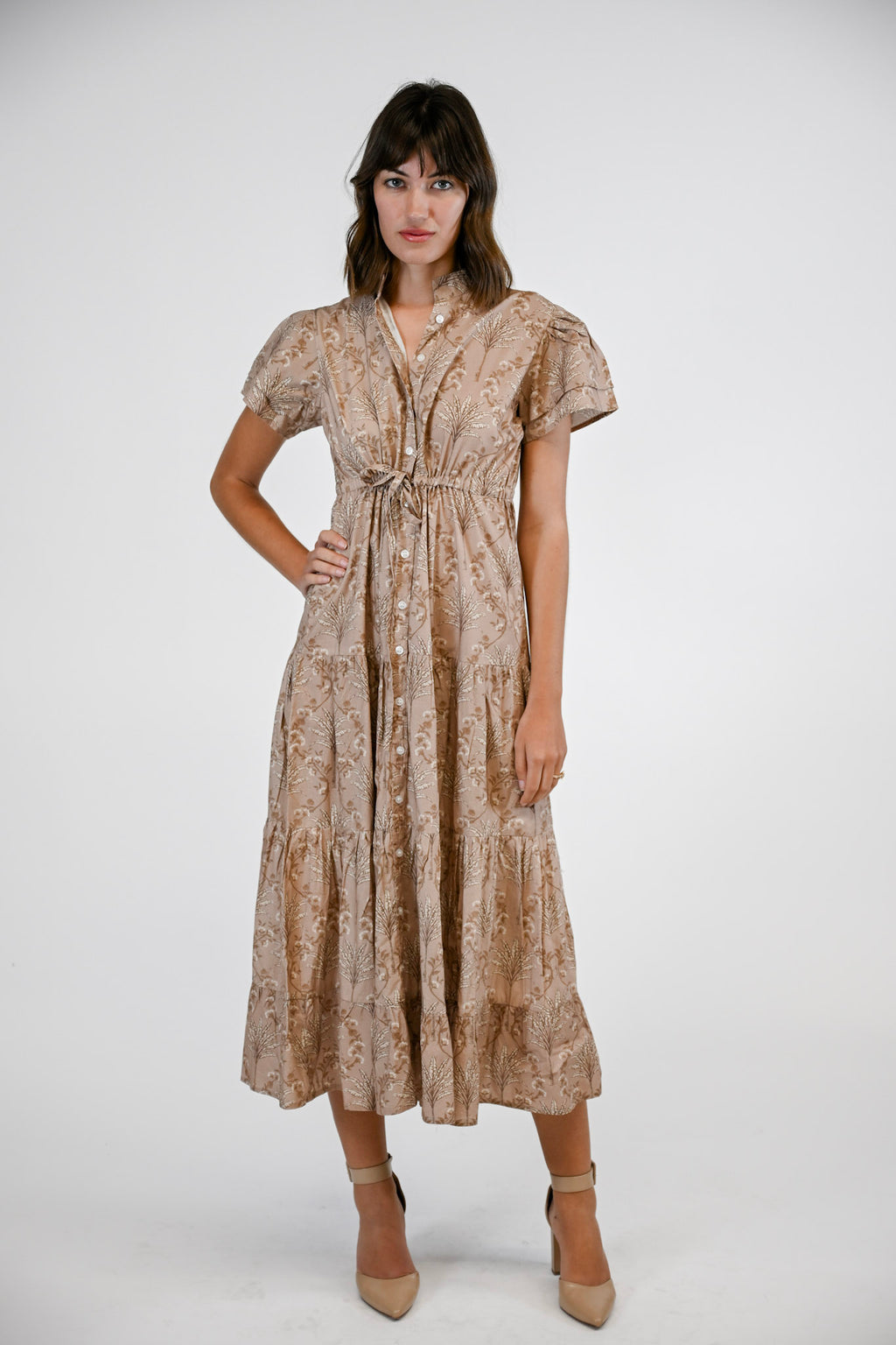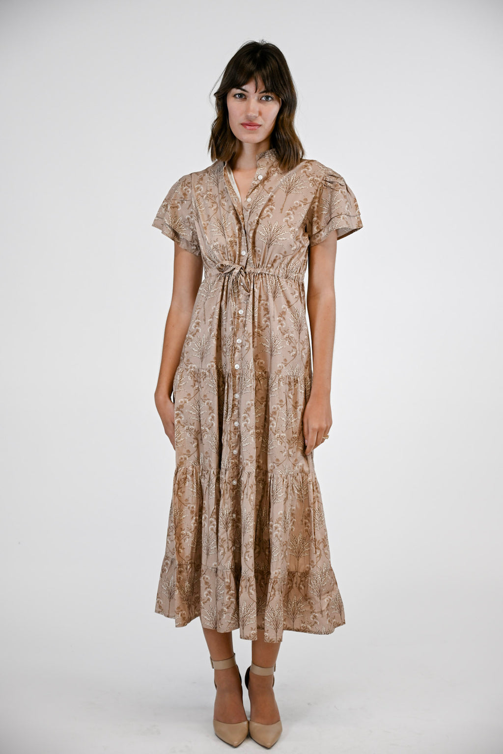 Feminine ease meets timeless style in the Hurley Dress. Featuring a drawstring waist for a customizable fit, a tiered skirt that moves with grace, and a functional button front, this design blends comfort with sophistication. Double flutter sleeves add a romantic finishing touch, making the Hurley a versatile staple for any season.