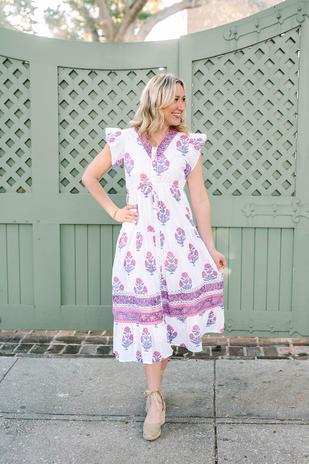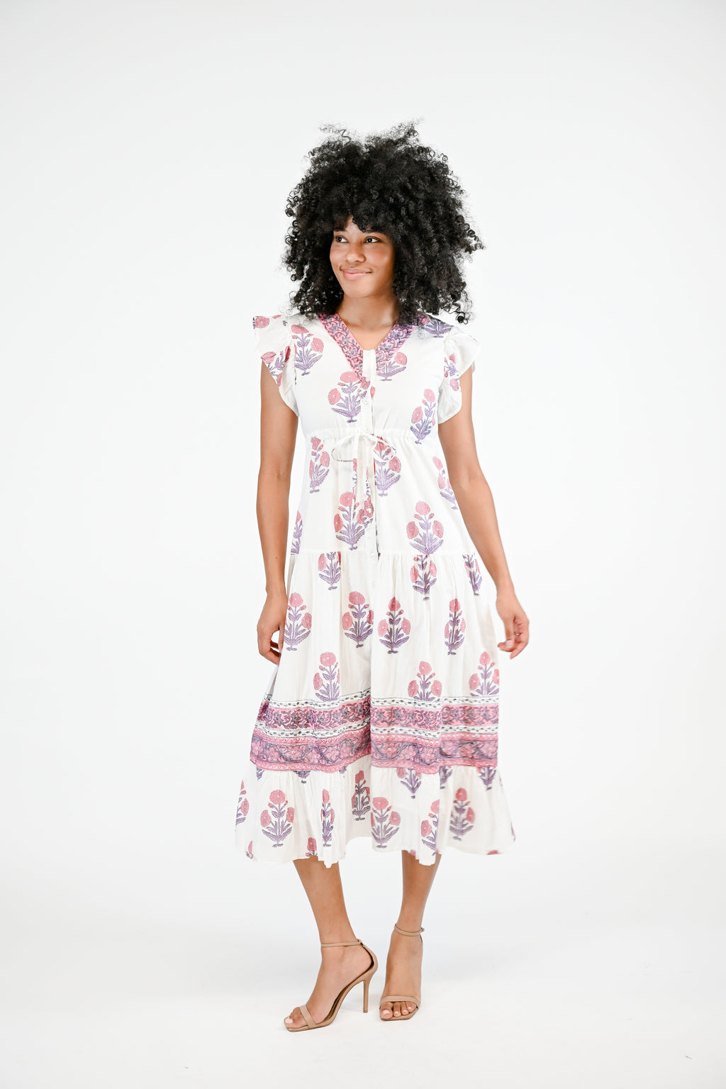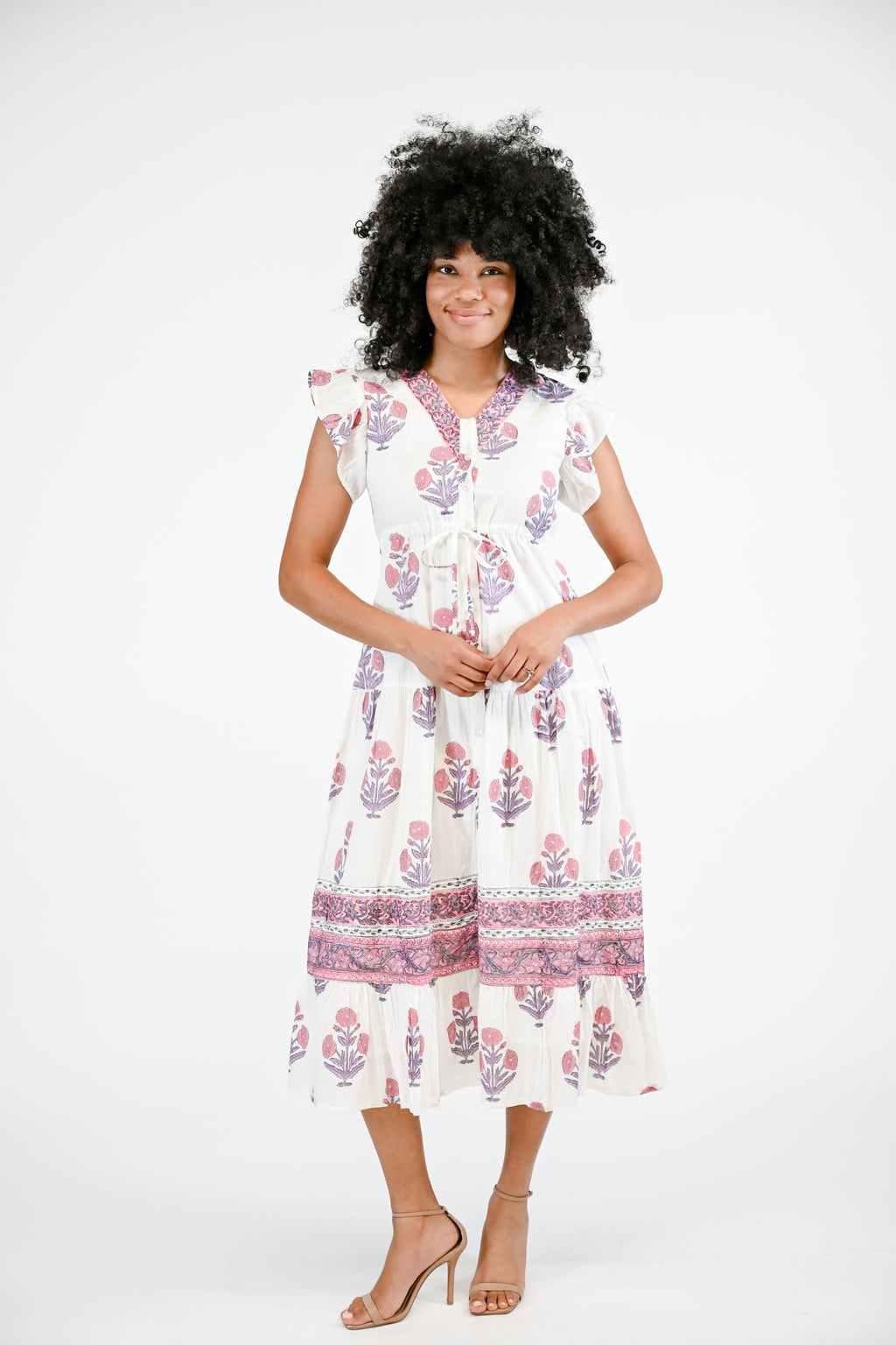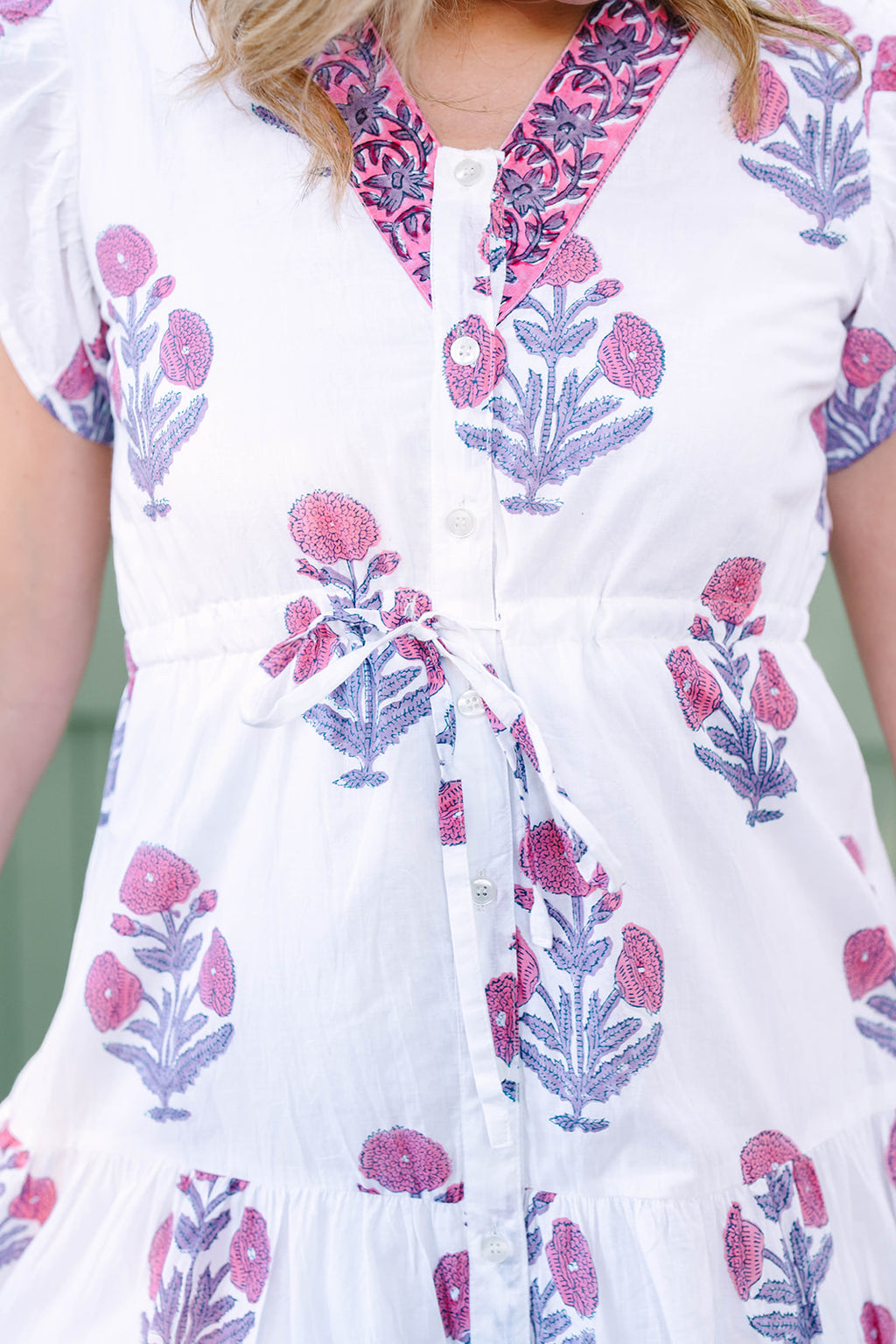 Introducing the Rosa, the perfect combination of style and comfort. With its drawstring waist, flutter sleeves, and elegant buttons down the front, this dress offers a flattering fit. Experience the ease and sophistication of this must-have piece.