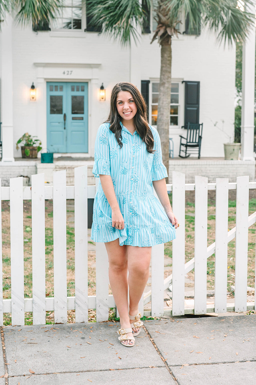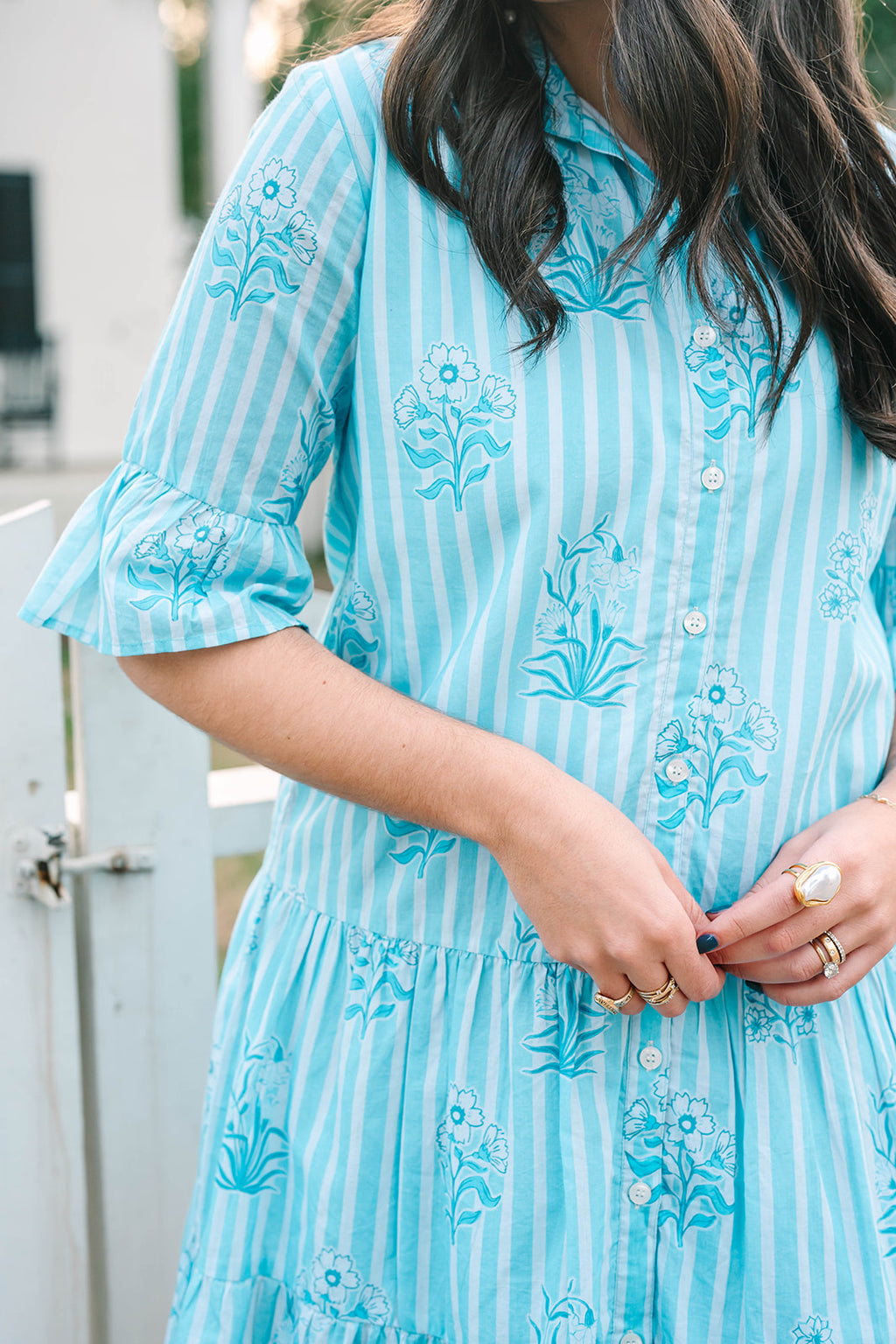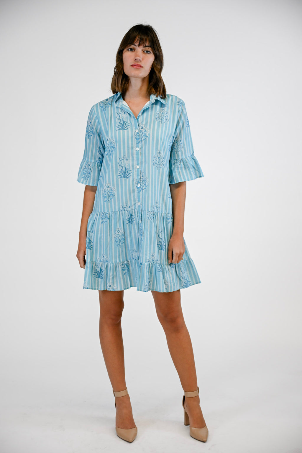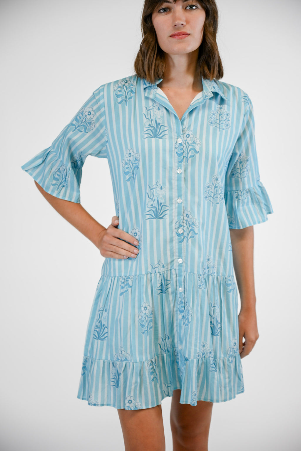 Playful yet polished, the Sullivan Swing Dress captures effortless charm with its breezy silhouette and timeless details. Designed with a classic collared neckline and full button-down front, this dress features ¾-length sleeves finished with a contrasting border for a touch of refined sophistication. The tiered skirt adds gentle movement, creating a flattering swing shape that’s perfect for any occasion. Effortless, elegant, and easy to wear—the Sullivan Swing Dress embodies the signature grace of Victoria Dunn.