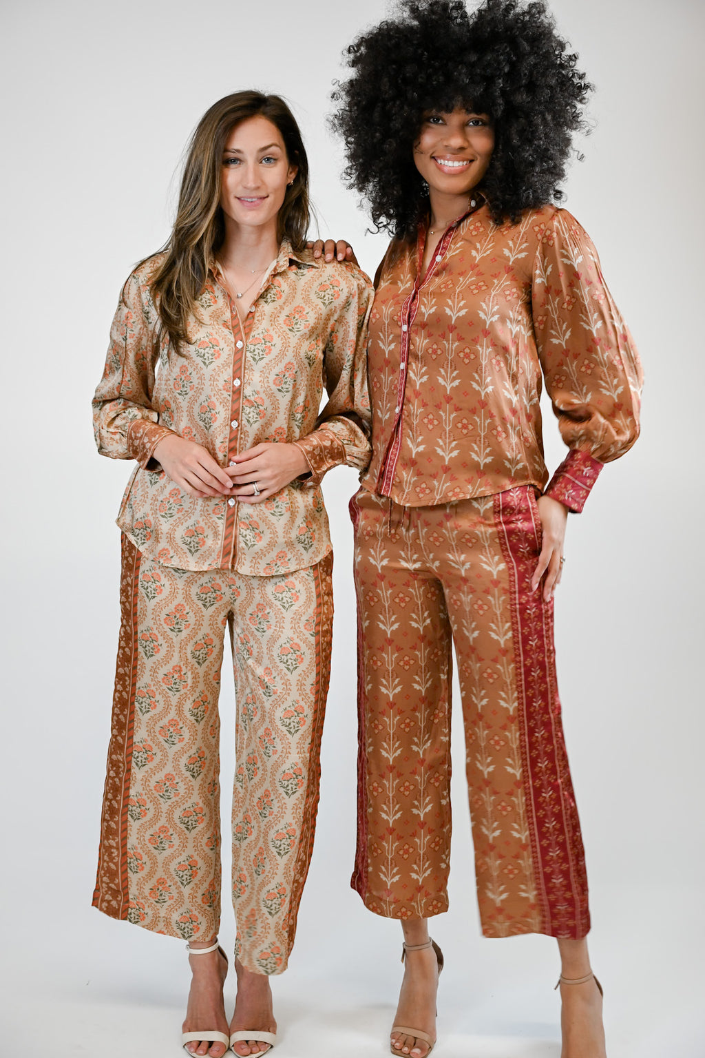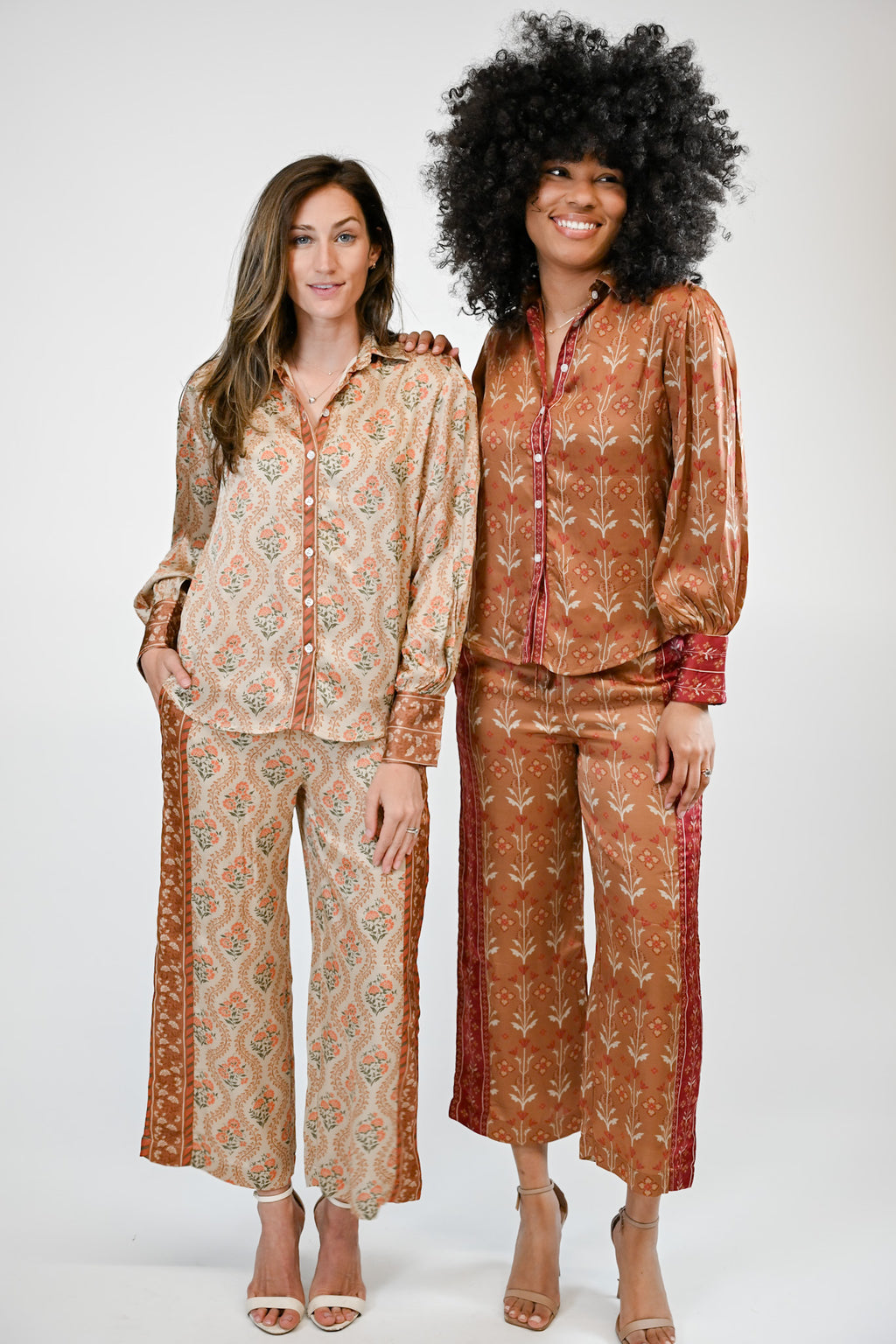 The Zara Blouse features a firm collar and puffed long sleeves. The button-down design allows for easy and comfortable wear.