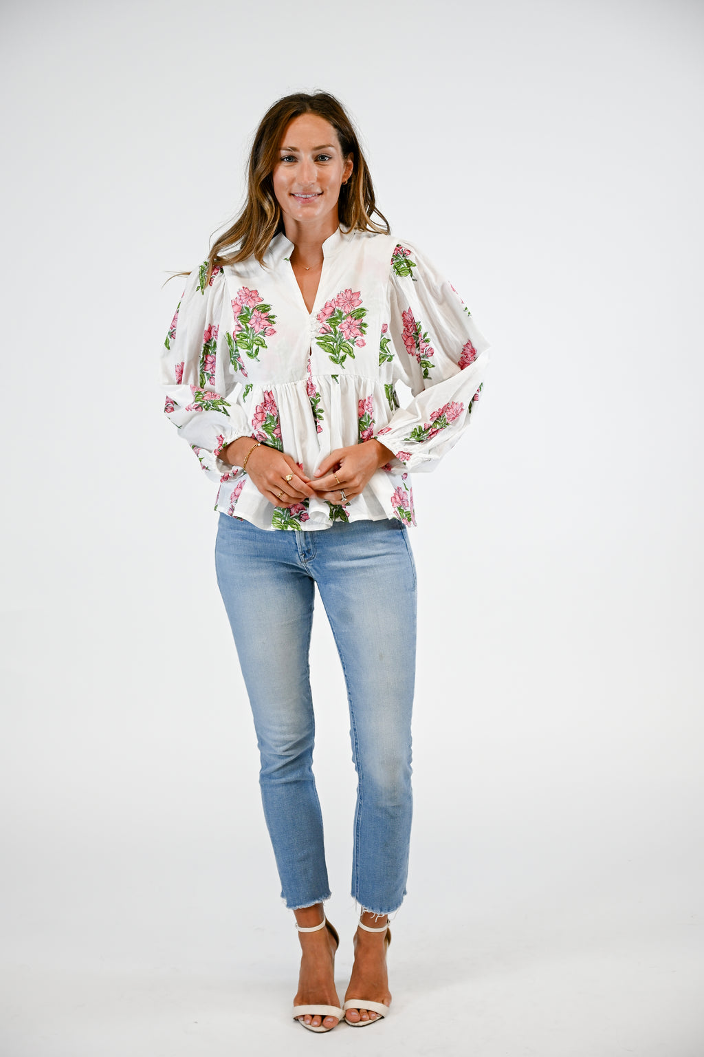 Introducing the Bluffton Blouse. This blouse features long sleeves, v-neckline, and a flowy silhouette creating a relaxed fit.