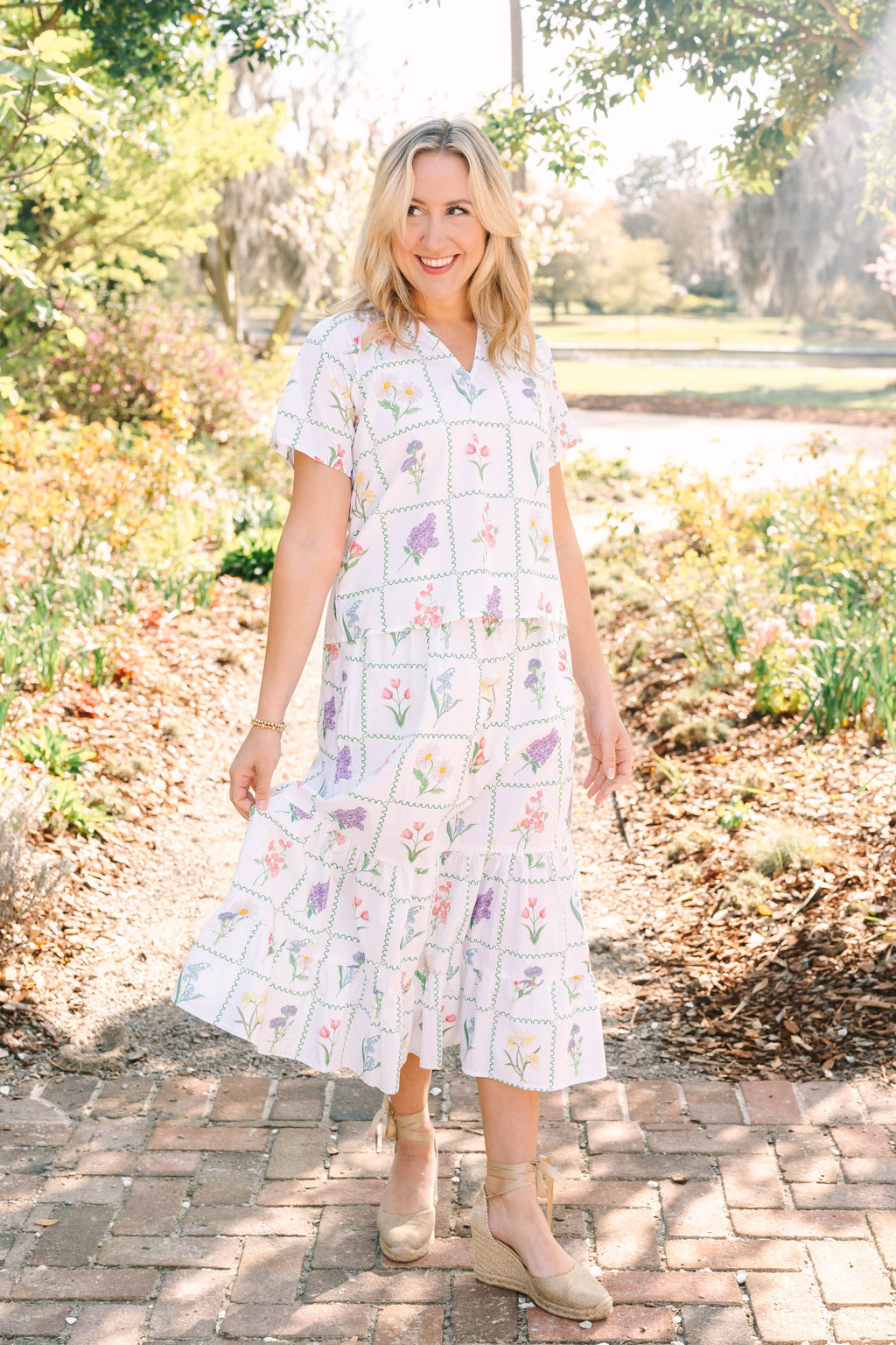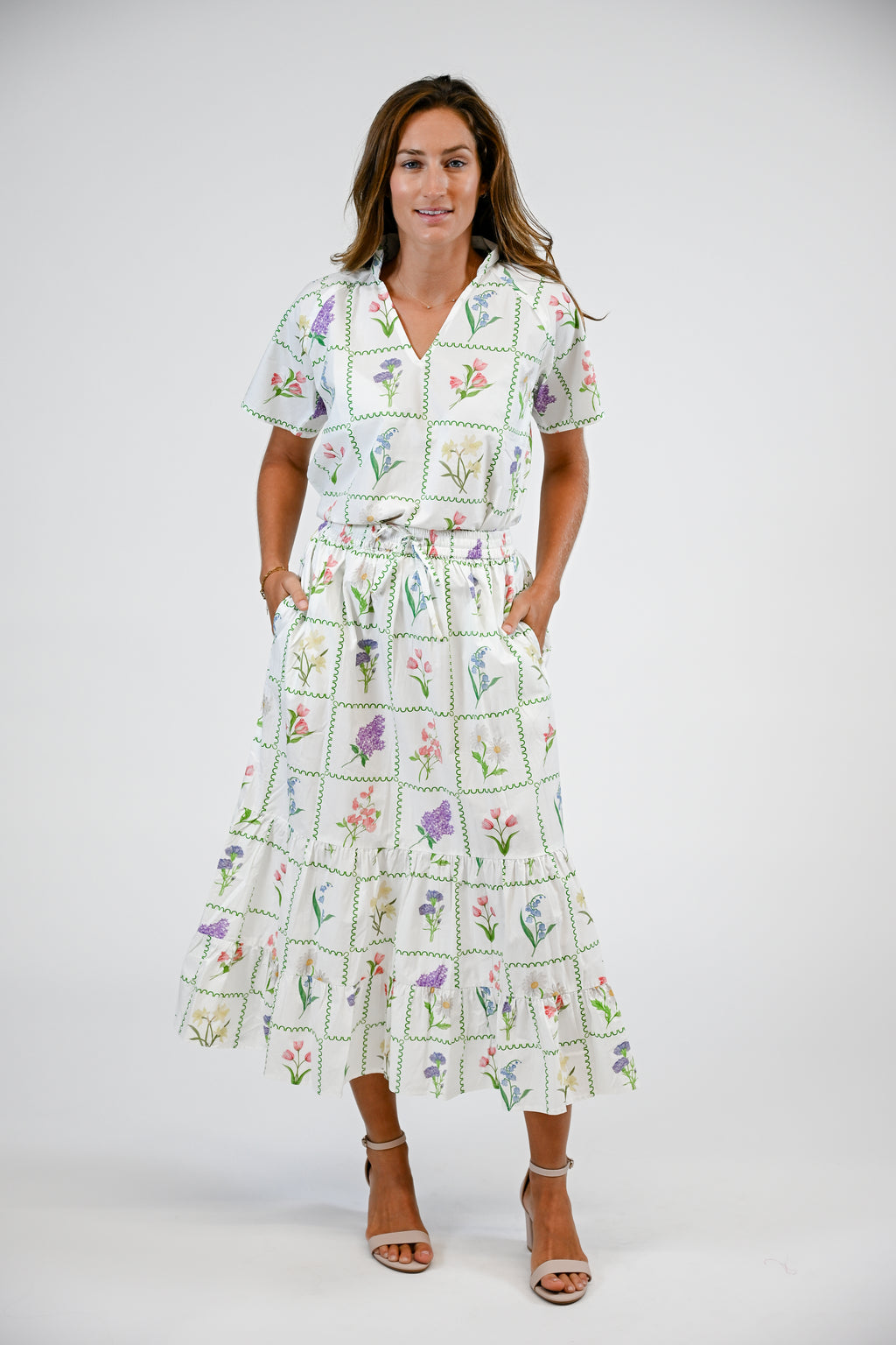 The Olivia Blouse is a relaxed fit silhouette that features a split neckline, standing collar, and short sleeves. Pair with the Olivia Skirt for the perfect ensemble.