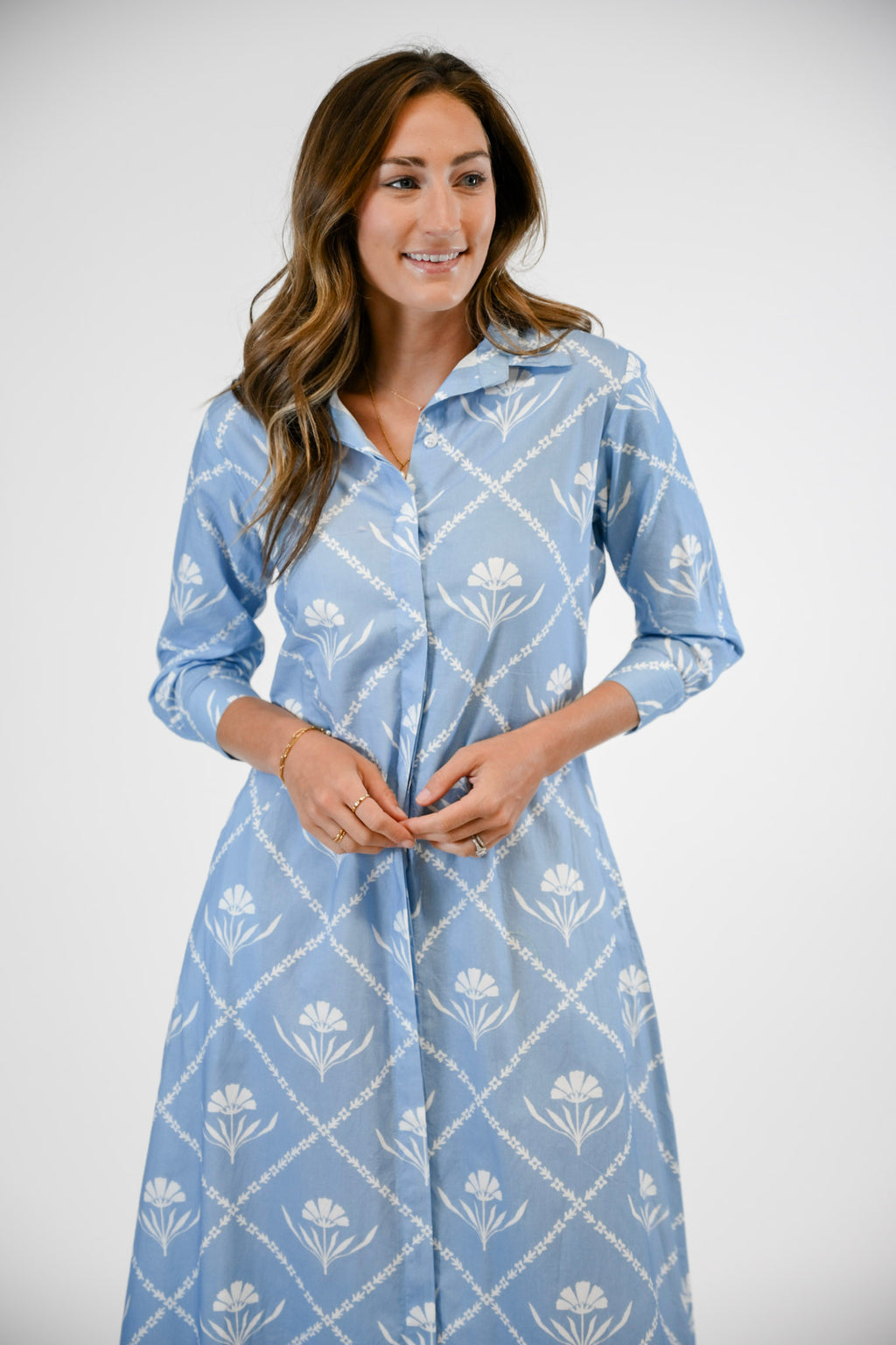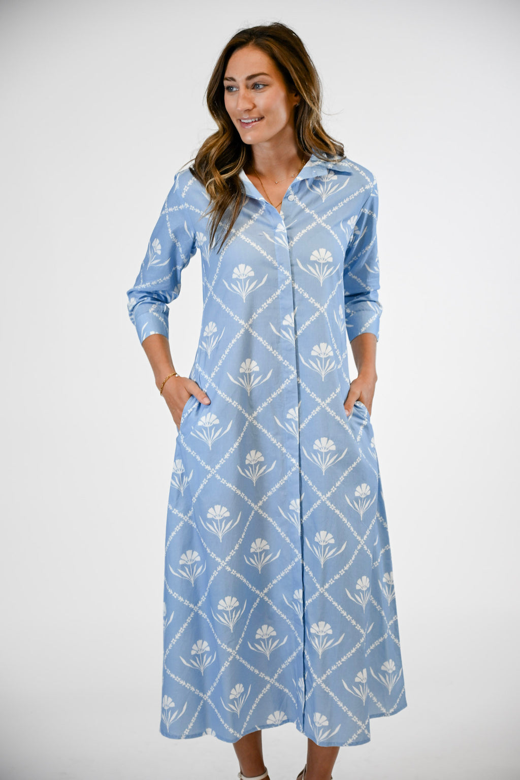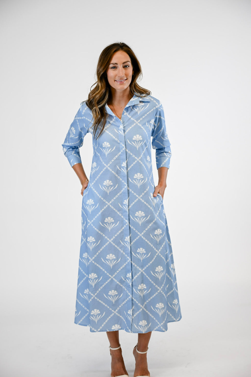 Effortlessly classic with a modern twist, the Bailey Dress exudes timeless sophistication. Featuring a shirt dress silhouette with a classic collar and concealed button-front placket, this design offers a clean, refined look. The empire waistline and subtle A-line cut create a flattering, feminine shape, while ¾-length sleeves with button cuffs add tailored charm. Finished with practical side seam pockets, the Bailey is the perfect blend of polish and ease—ideal for any occasion.