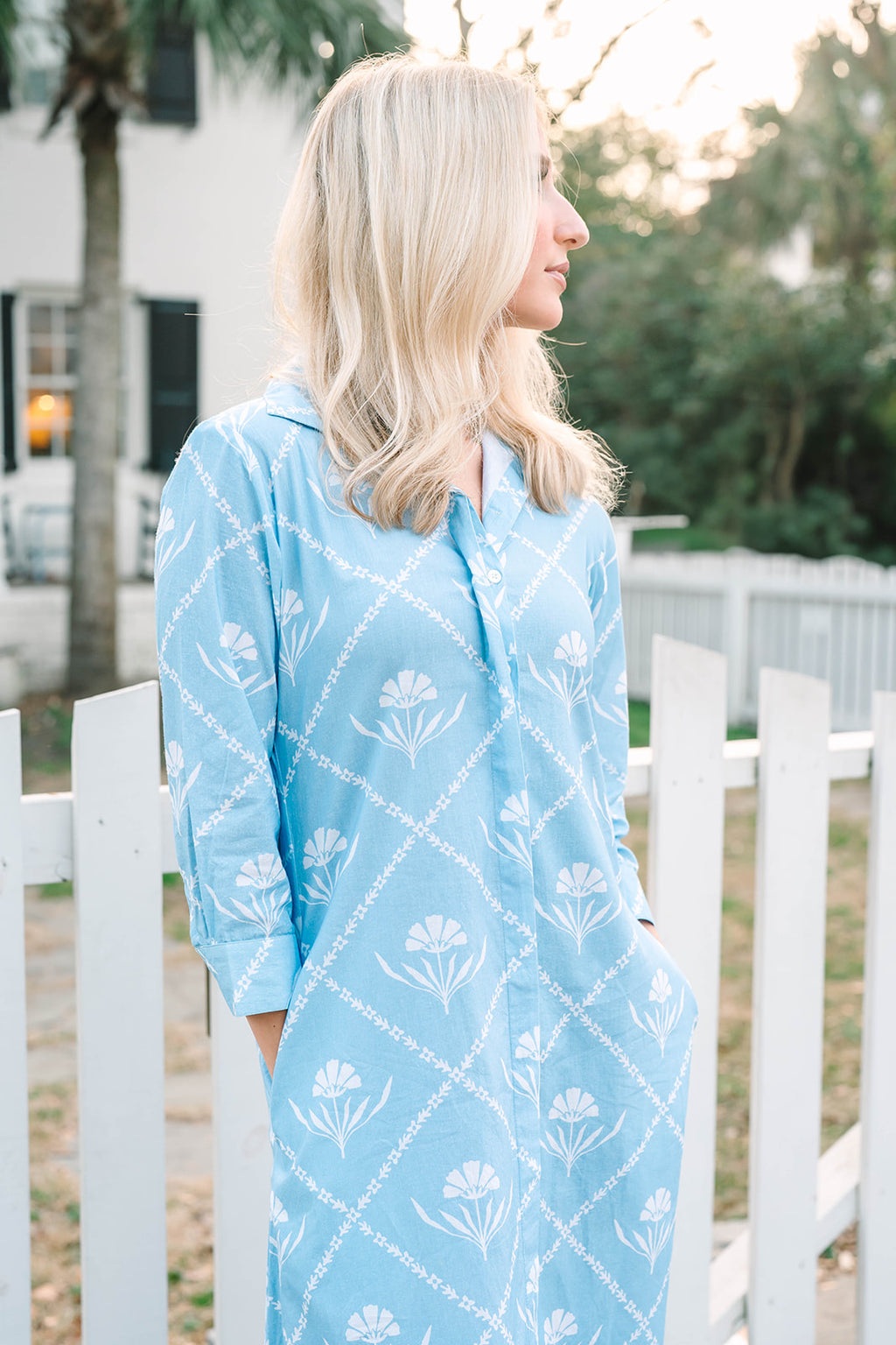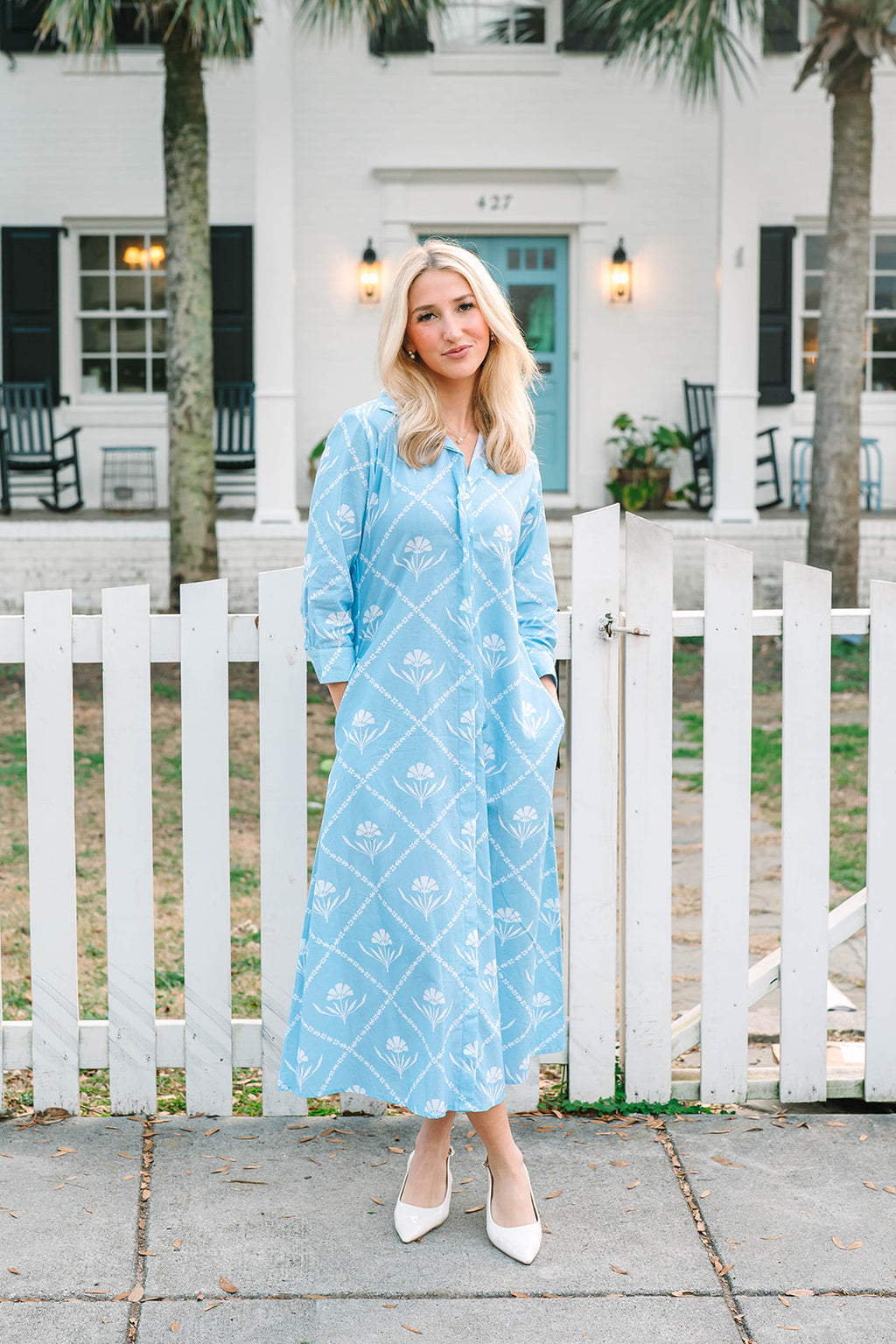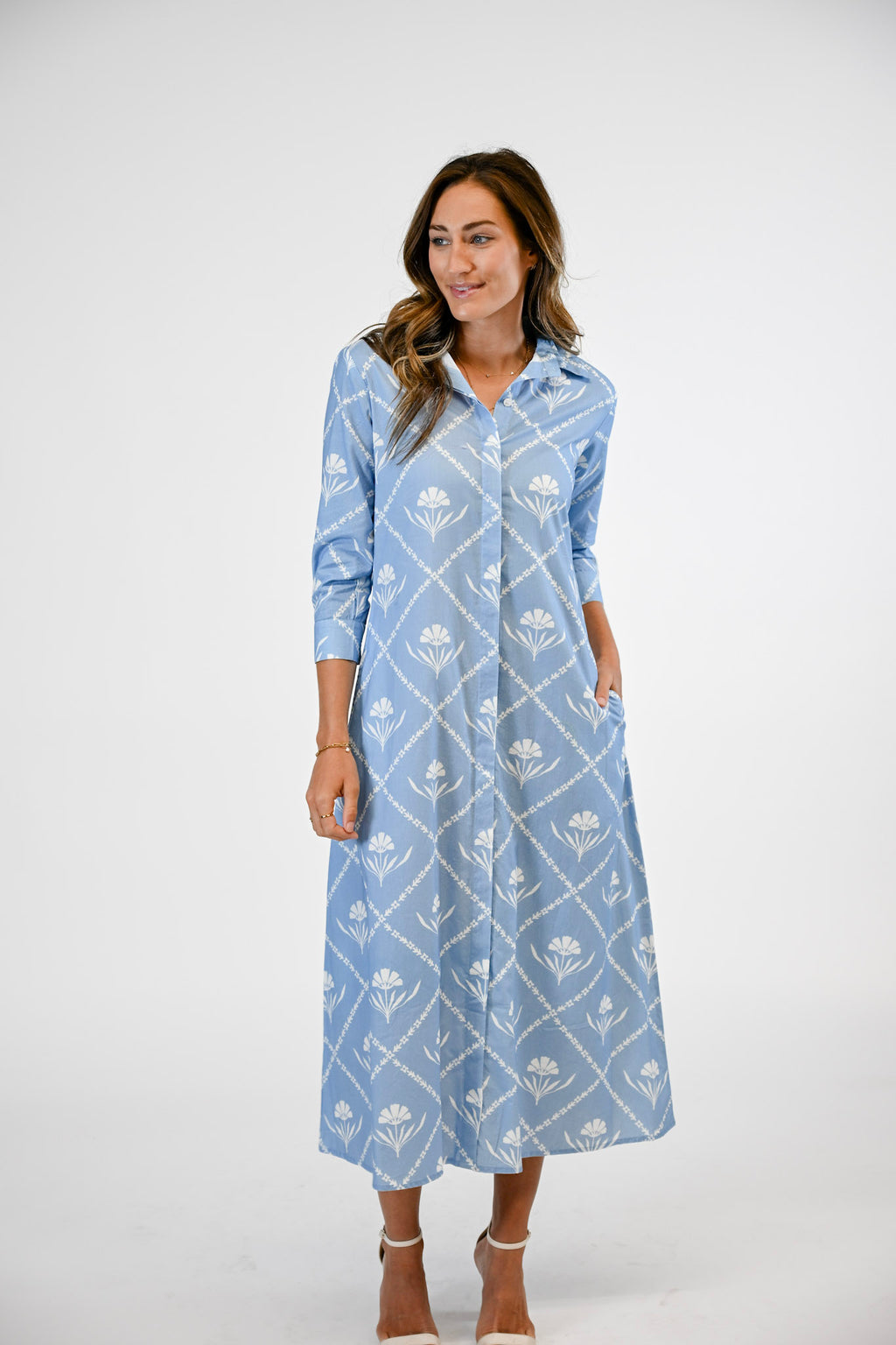 Effortlessly classic with a modern twist, the Bailey Dress exudes timeless sophistication. Featuring a shirt dress silhouette with a classic collar and concealed button-front placket, this design offers a clean, refined look. The empire waistline and subtle A-line cut create a flattering, feminine shape, while ¾-length sleeves with button cuffs add tailored charm. Finished with practical side seam pockets, the Bailey is the perfect blend of polish and ease—ideal for any occasion.