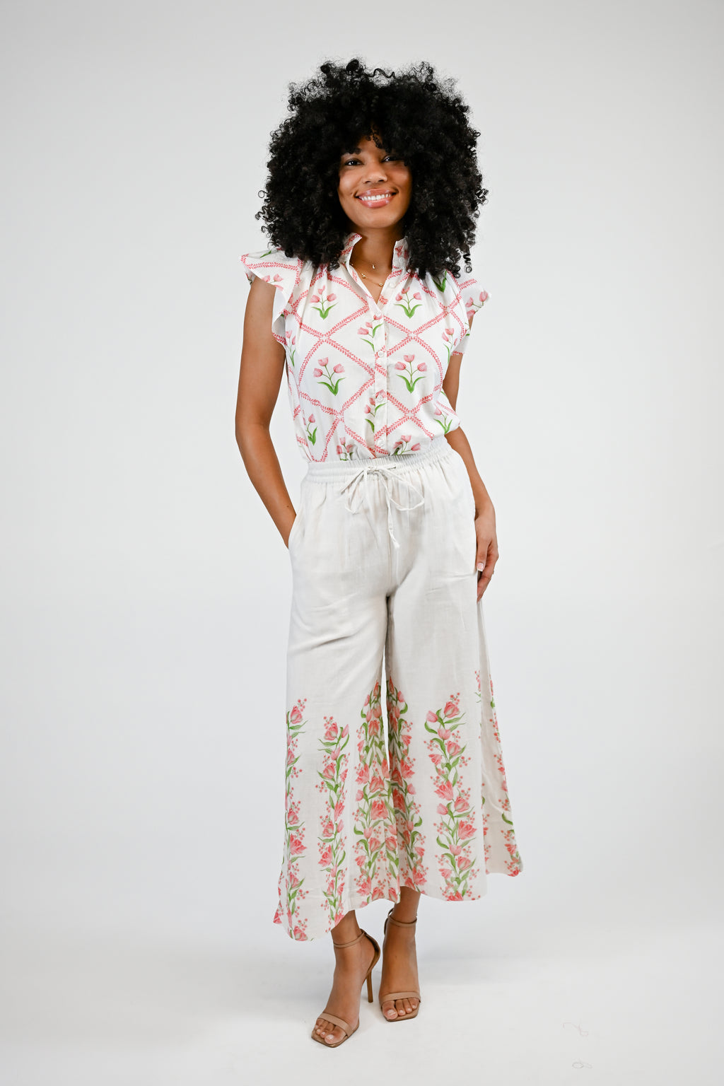 The Bays Blouse features a relaxed fit, ruffled collar, small flutter sleeve, and a button-down front. Providing both style and comfort, this blouse is perfect for any occasion.