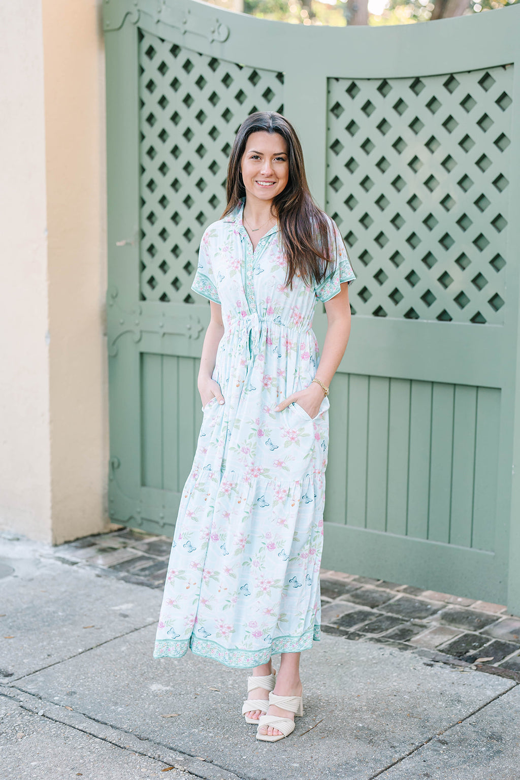 Introducing the Belle, the perfect warm weather dress for every occasion. With a relaxed fit, collared neckline, banded cap sleeves, and a shirred waist, this dress flatters every figure. Complete with a button front closure and side pockets, it's as stylish as it is functional.