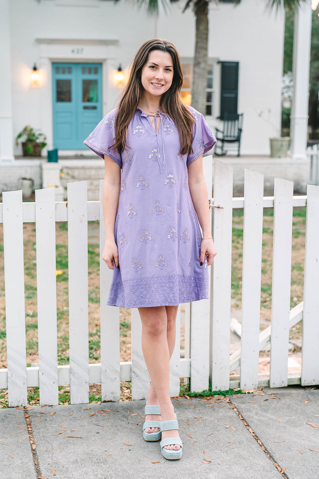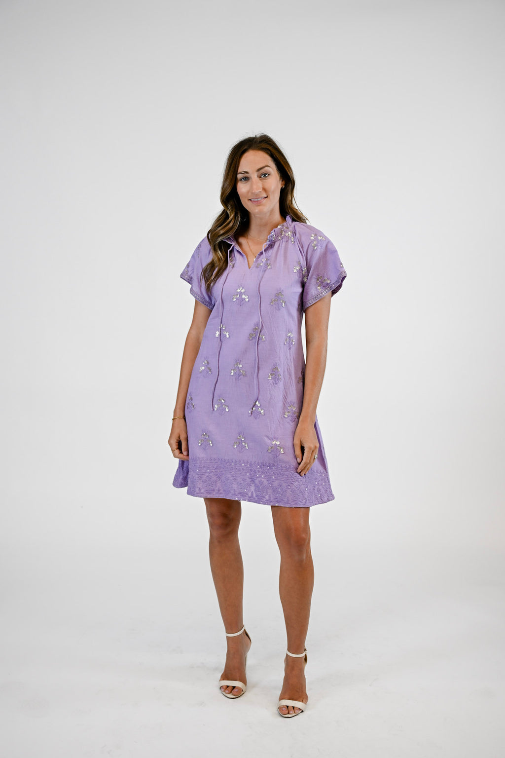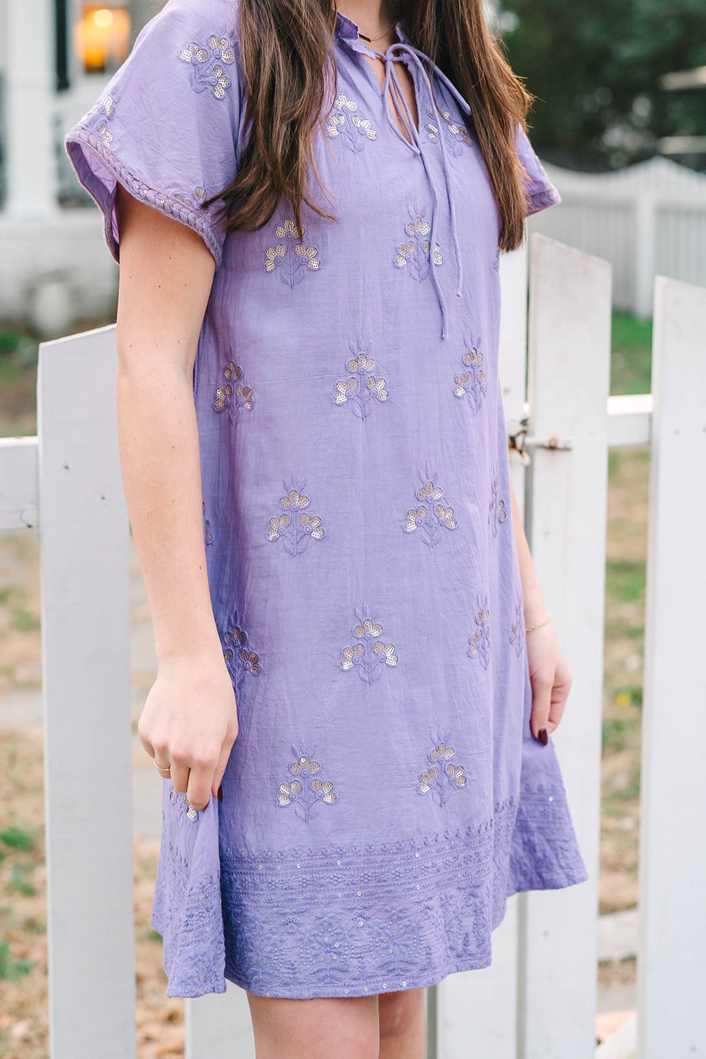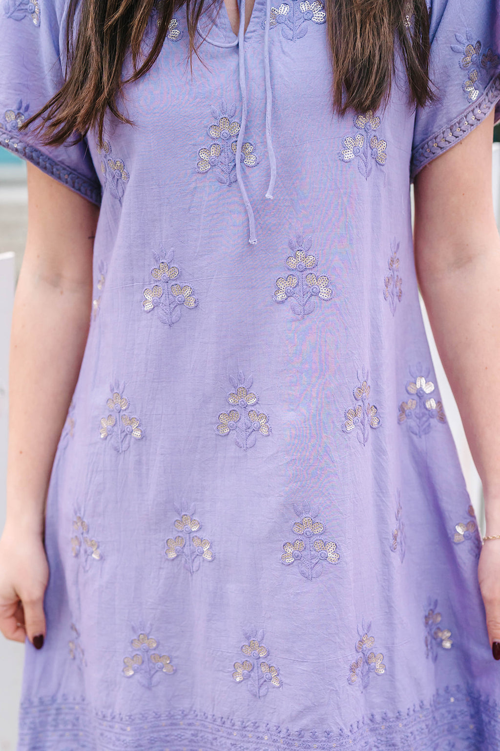 Charming and versatile, the Blair Dress is the perfect mini for every occasion. Featuring short sleeves and a flattering V-neckline with a delicate tie closure, this silhouette offers a relaxed yet refined look. The embroidered trim adds an elegant finishing touch, making the Blair an effortless choice for both casual outings and special events.