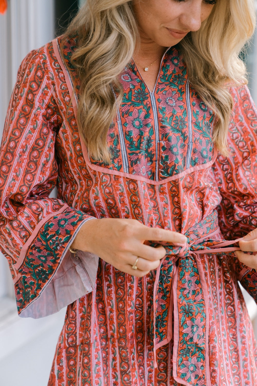 Introducing the Brynn Mini, a relaxed fit caftan silhouette. The Brynn features a stand collar, and side pockets.