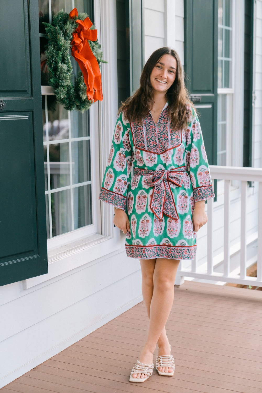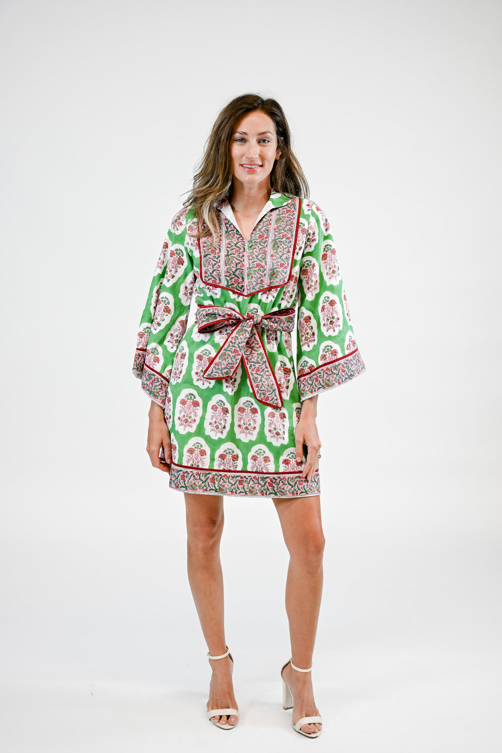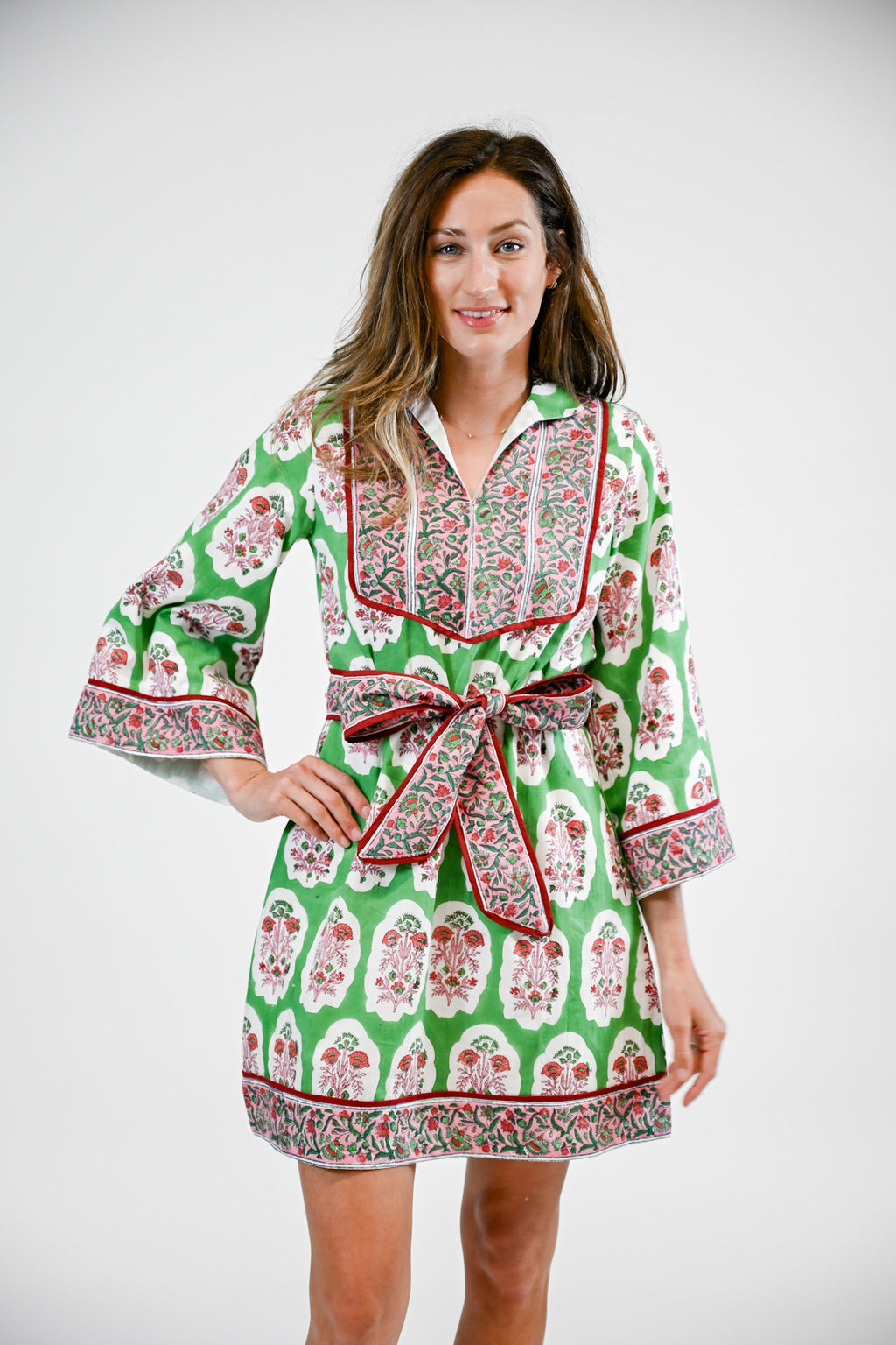 Introducing the Brynn Mini, a relaxed fit caftan silhouette. The Brynn features a stand collar, and side pockets.