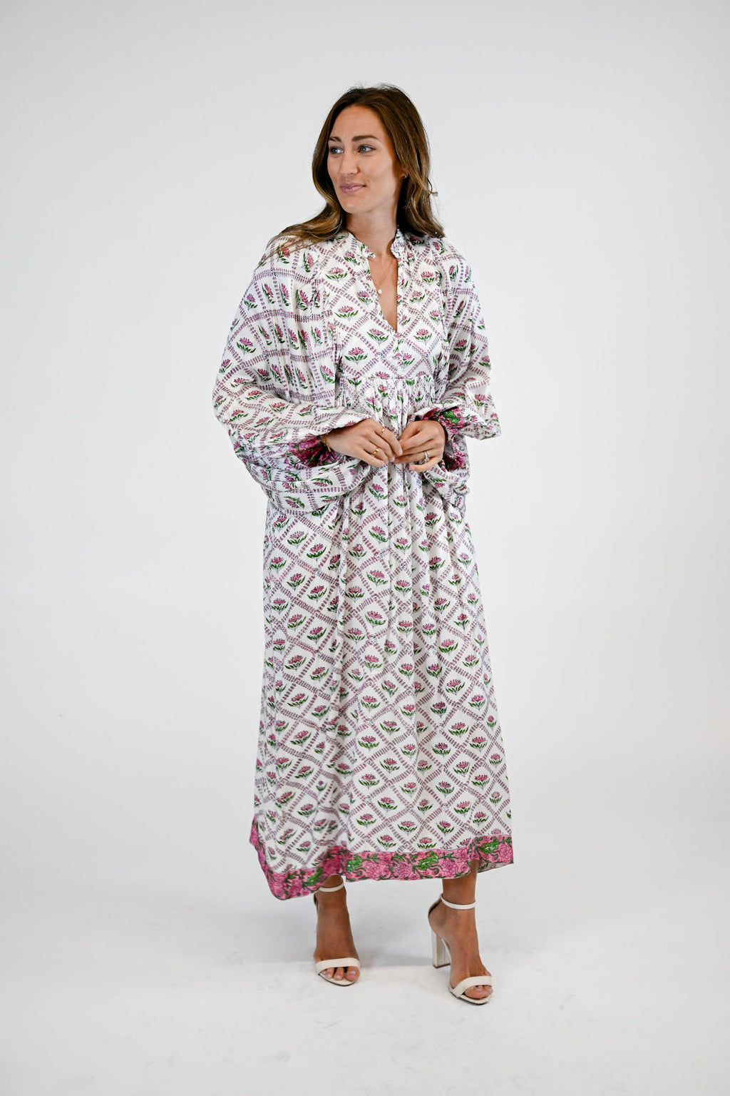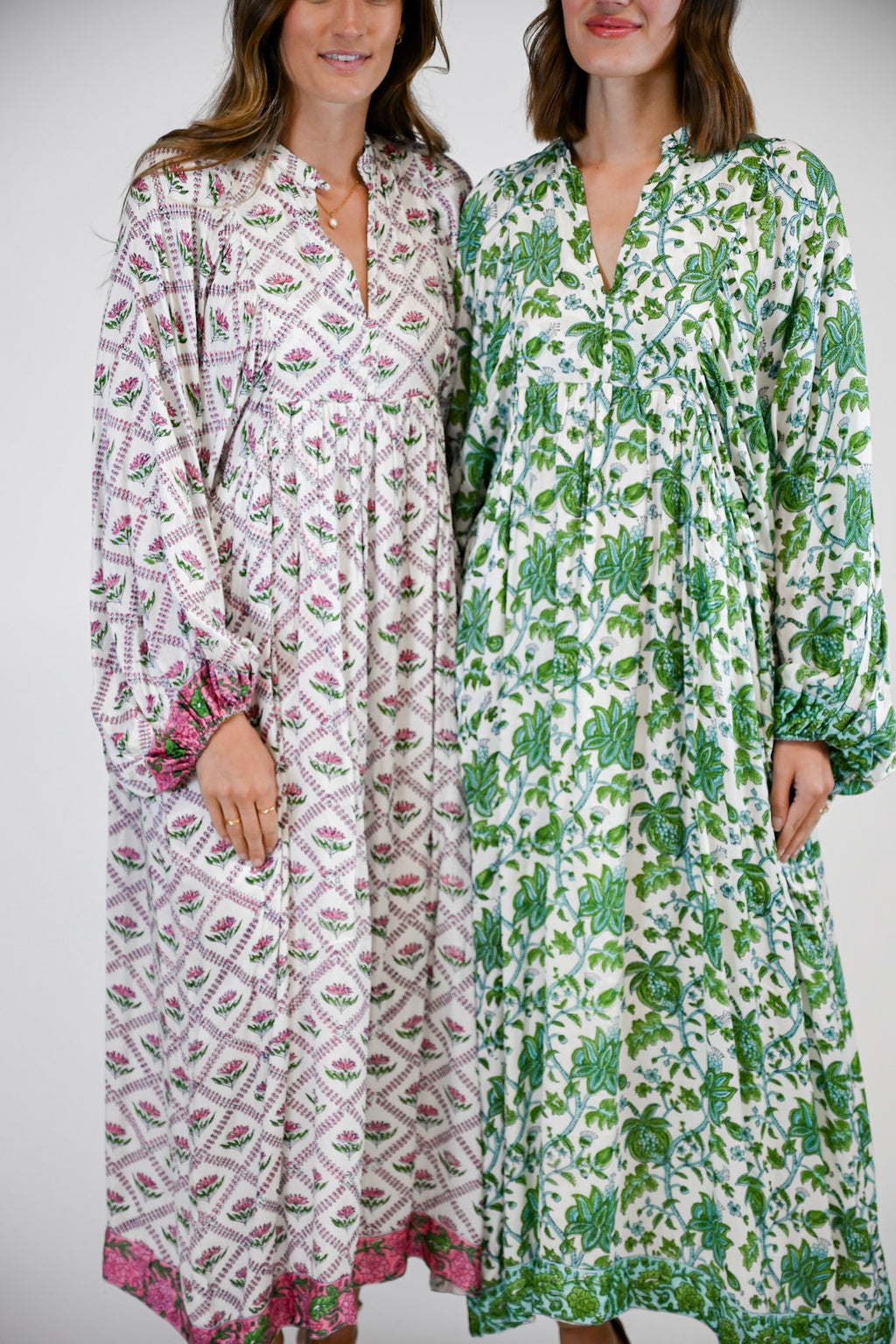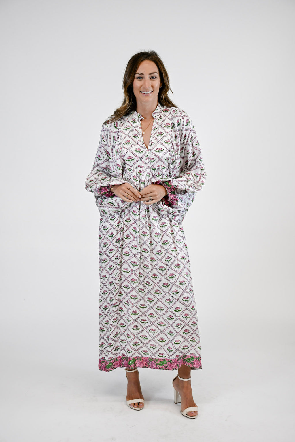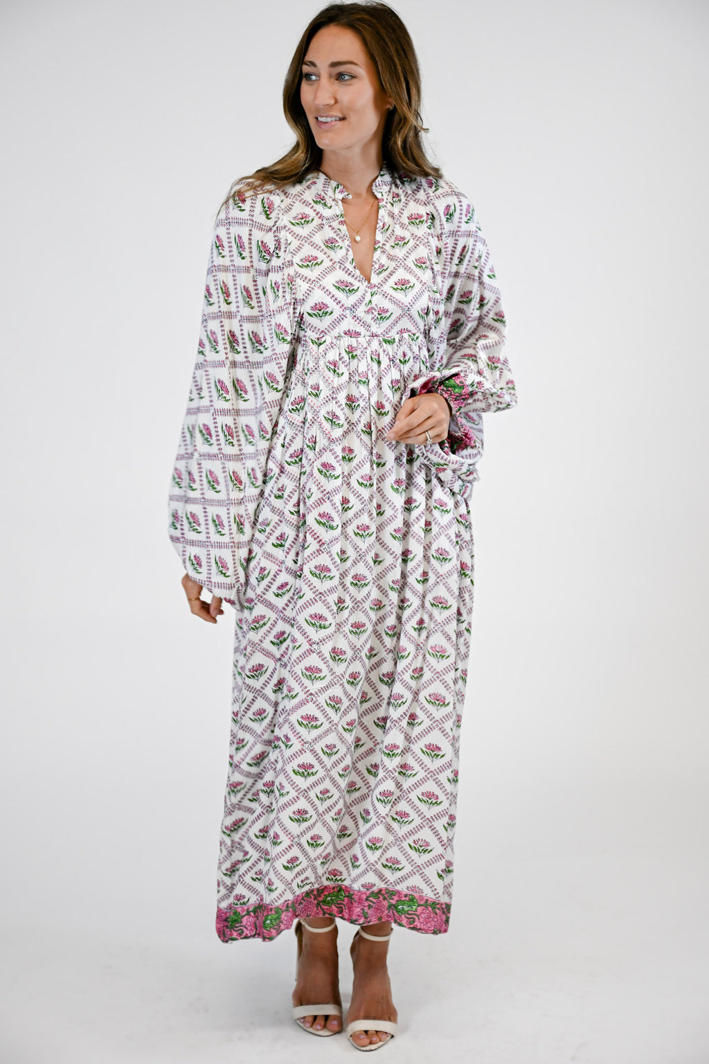 Effortlessly elegant and endlessly versatile, the Cassia Dress is your go-to maxi for every occasion. Designed with a flattering V-neckline and long puff sleeves, this timeless silhouette blends comfort with sophistication. Contrasting trim along the hem adds a refined touch of detail, making the Cassia a beautifully balanced piece that transitions seamlessly from day to night.