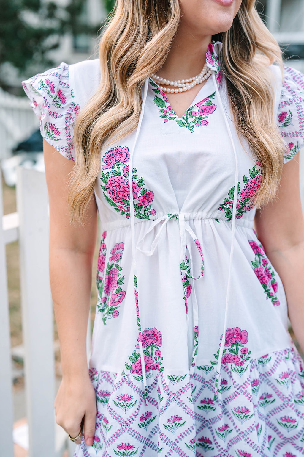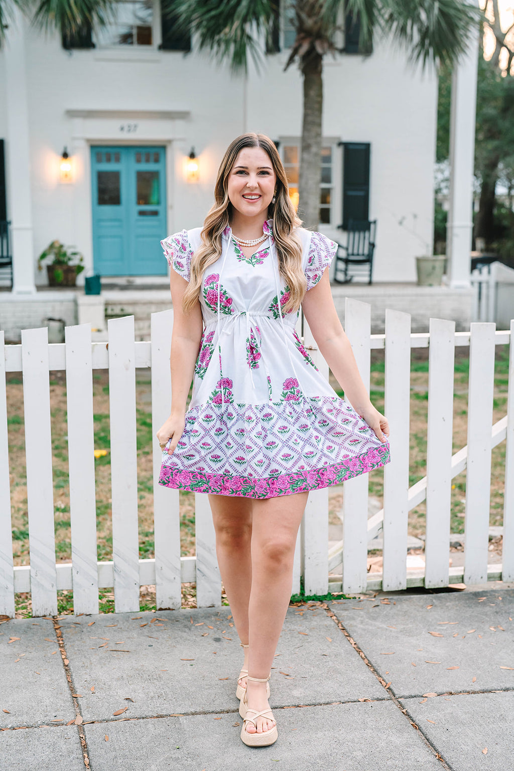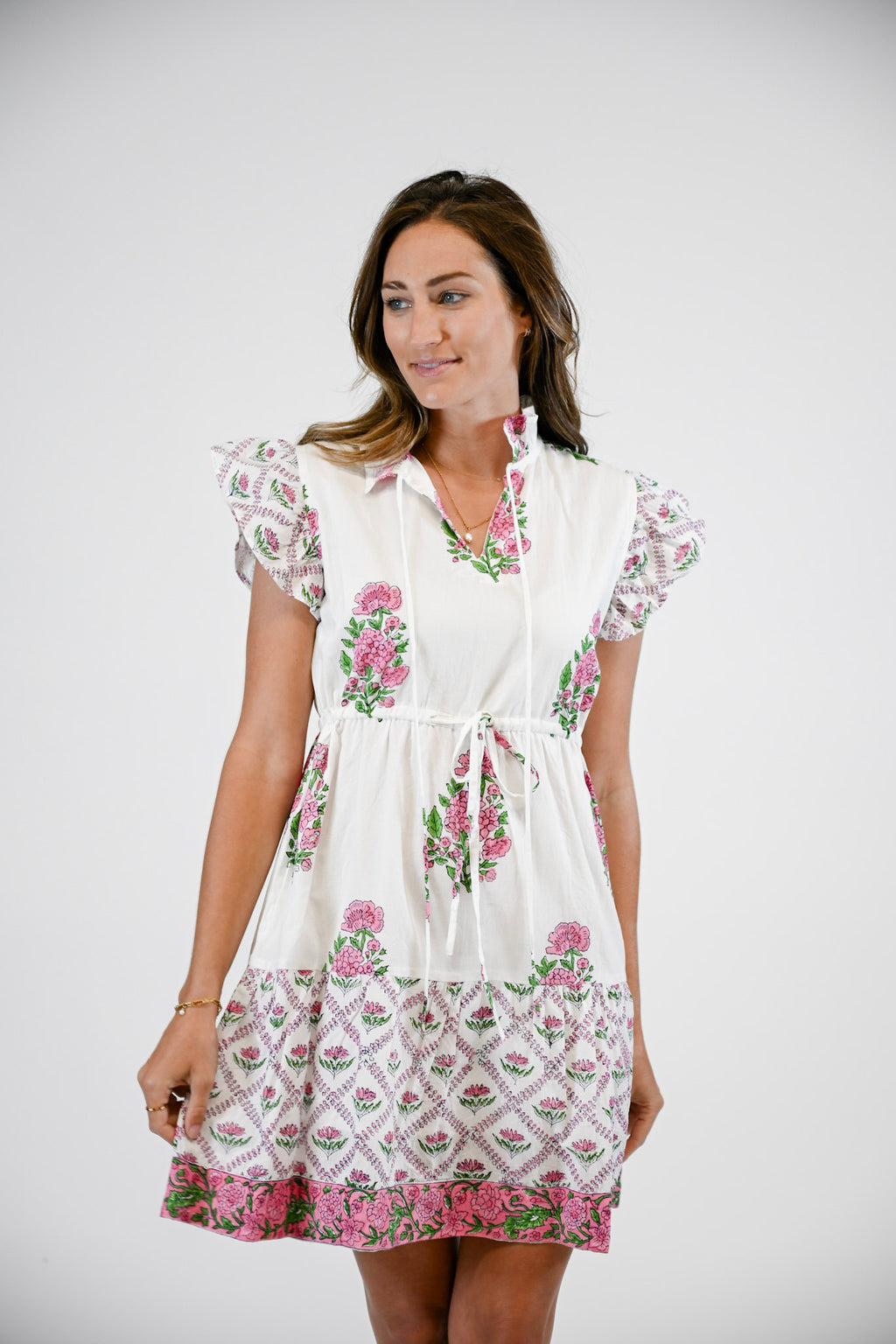 Playful yet effortlessly polished, the Delilah Dress is a breezy silhouette designed for everyday elegance. Featuring a relaxed fit and pullover style, it’s finished with a short ruffle collar and adjustable tie neckline for a touch of feminine charm. The adjustable drawstring waist flatters the figure, while the trapeze-style tiered mini skirt and side pockets add movement and ease. Perfect for brunches, strolls, and everything in between, the Delilah is an instant favorite.