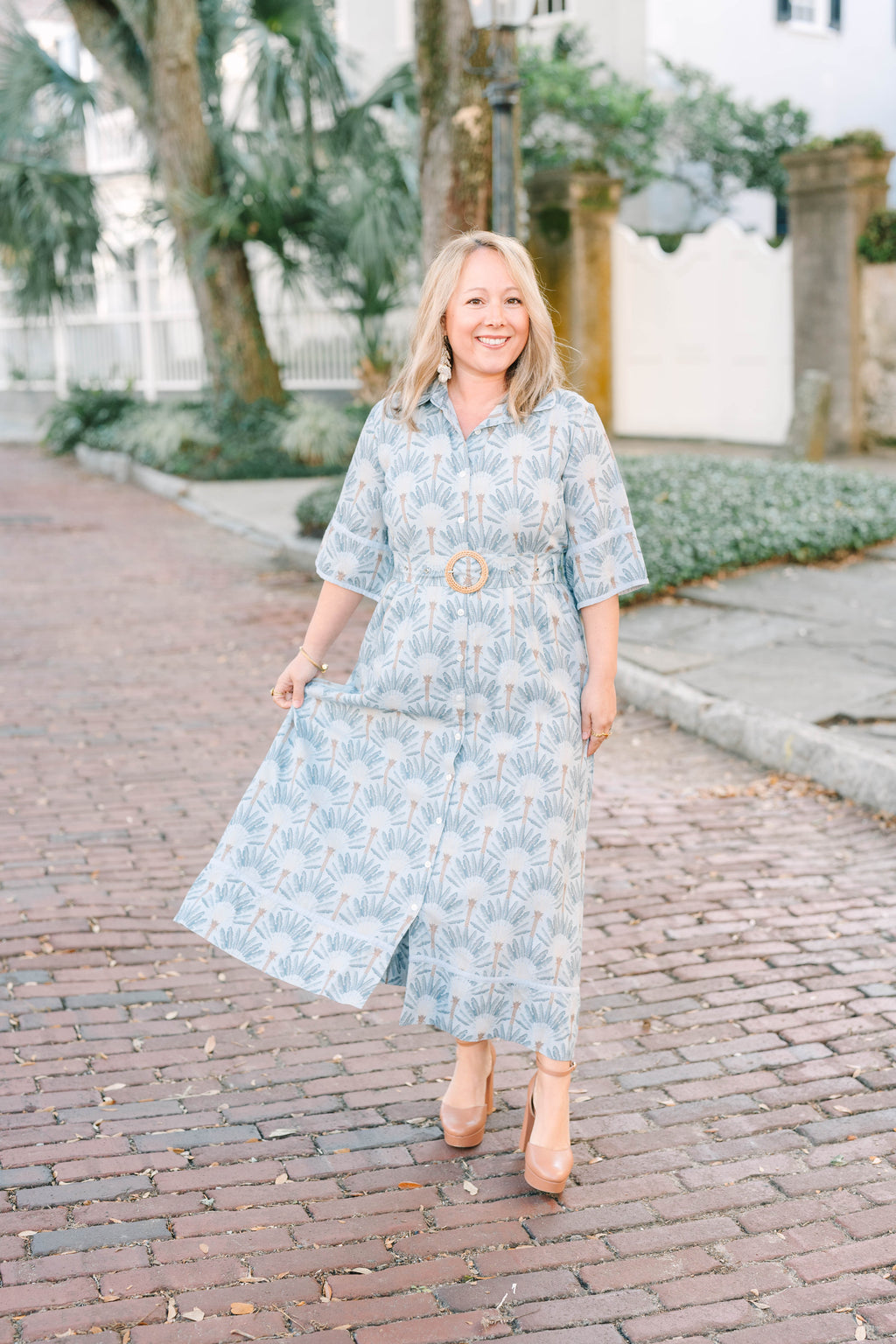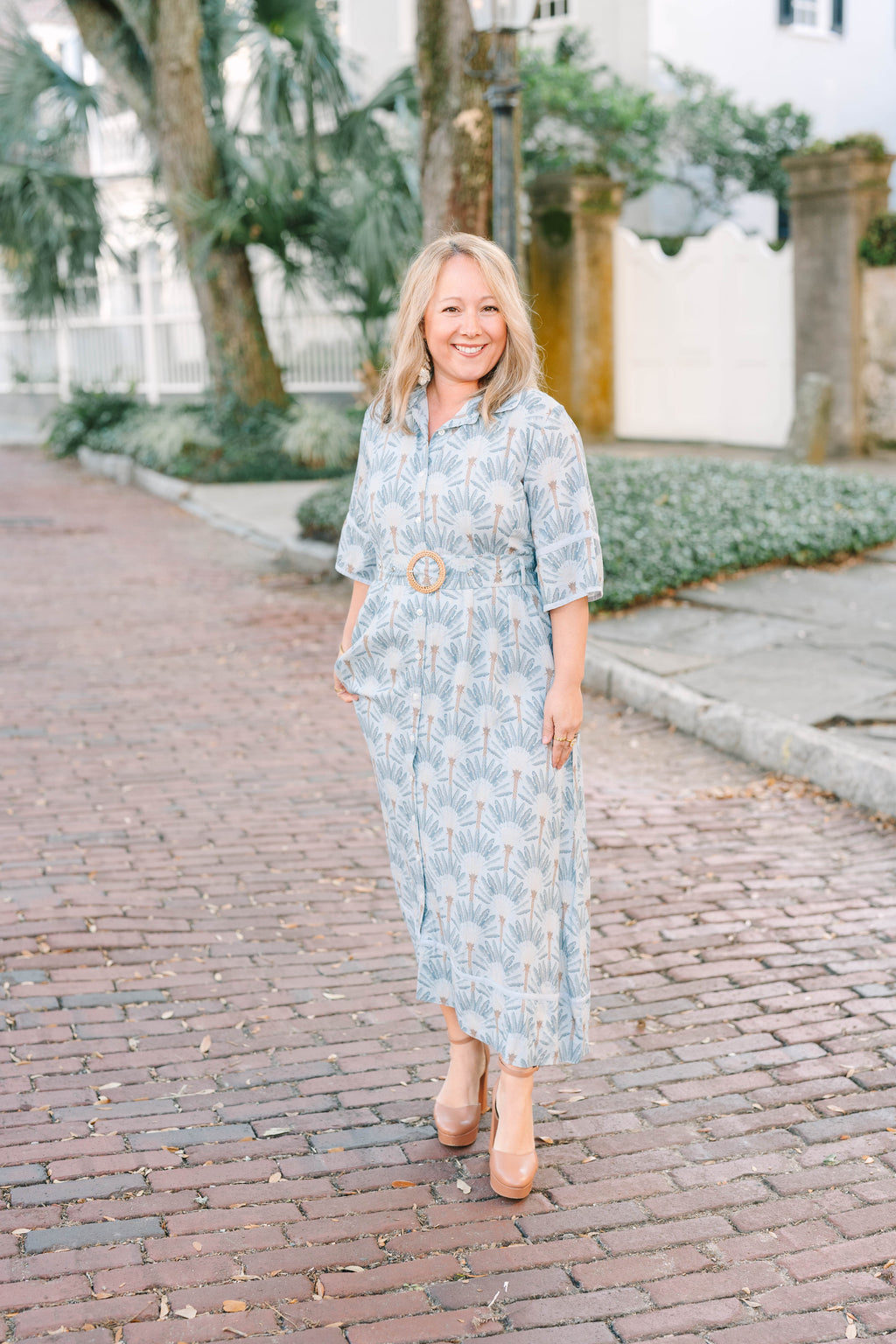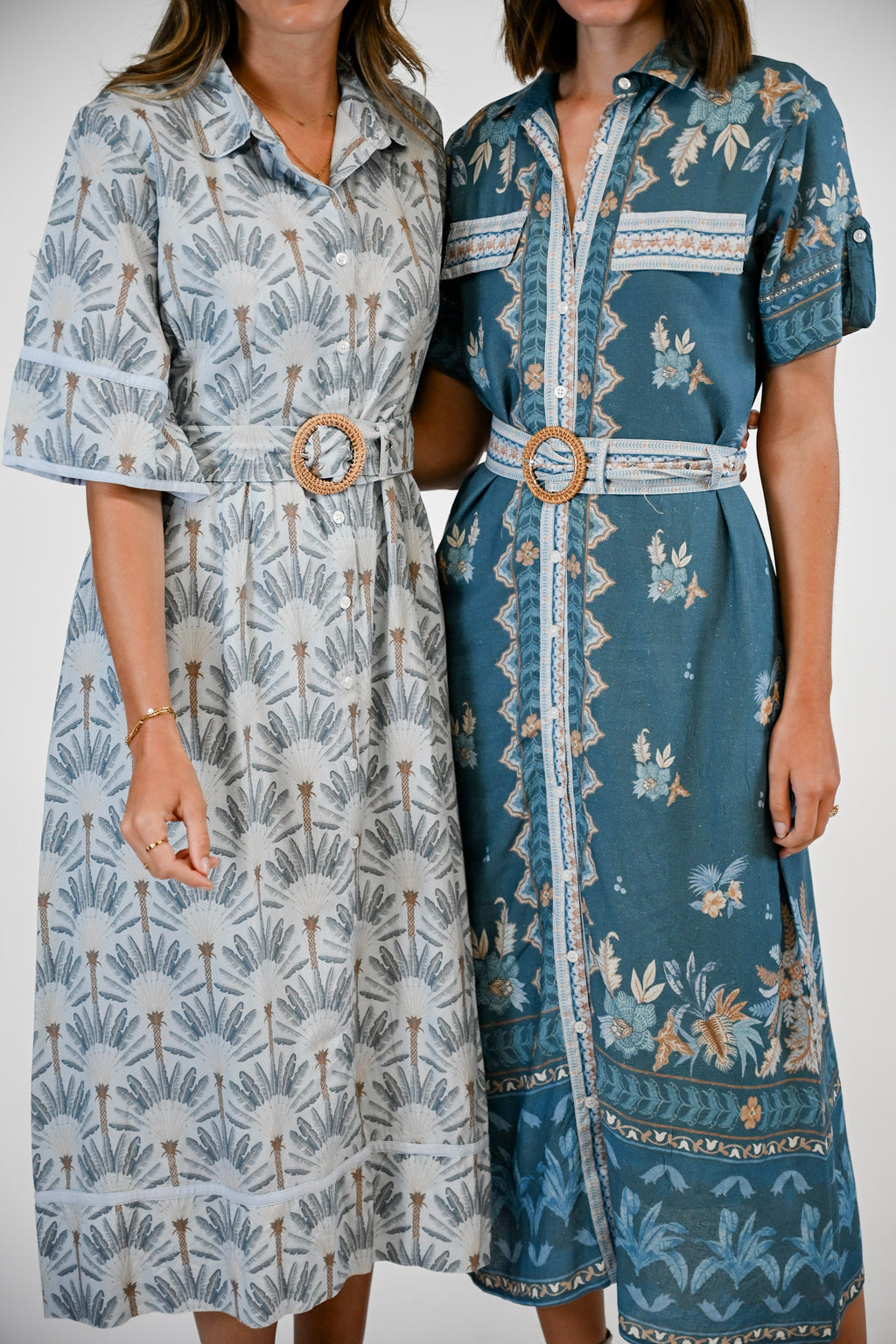 Effortlessly refined and beautifully detailed, the Flora Dress blends classic tailoring with feminine ease. Designed with a collared neckline and front button placket, this silhouette flatters with an A-line skirt and graceful elbow-length bell sleeves. Thoughtful touches—contrast piping and side pockets—add both charm and functionality. Finished with a coordinating belt, the Flora offers timeless versatility for any occasion.