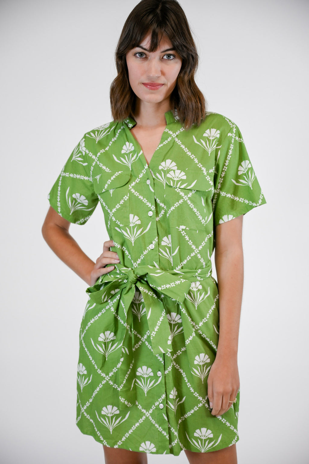 Effortlessly classic and endlessly versatile, the Delaney Dress redefines everyday elegance. Designed in a timeless shirt dress style, it features a relaxed silhouette with a mandarin collar, short sleeves, and a front button placket for a clean, refined finish. Functional details—including front flap pockets, side seam pockets, and a shirt-style hem—blend practicality with sophistication. Perfect for any occasion, the Delaney offers laid-back polish with a modern touch.